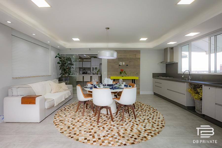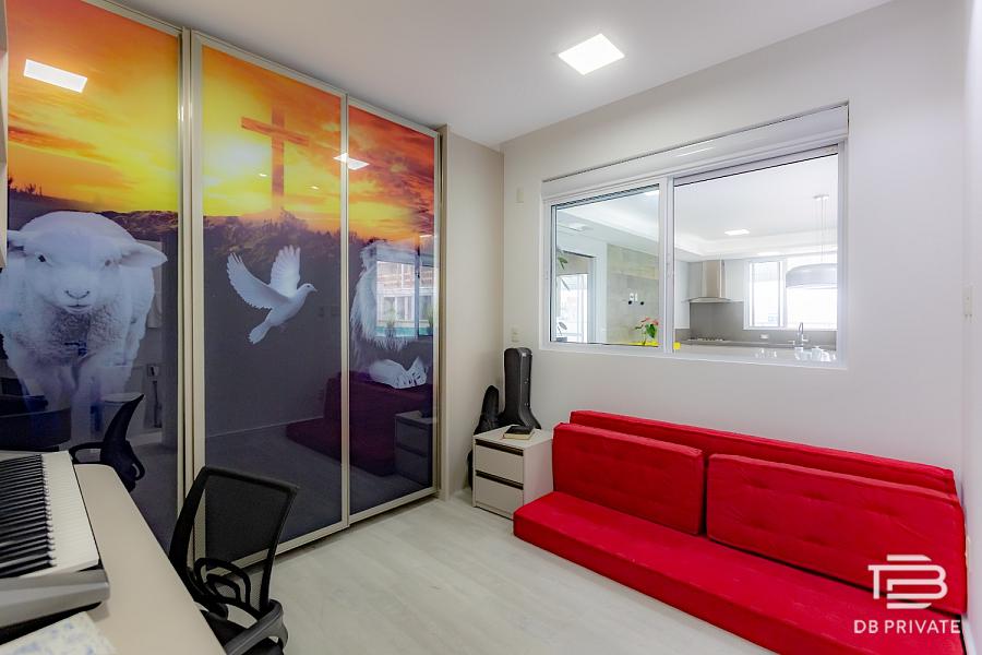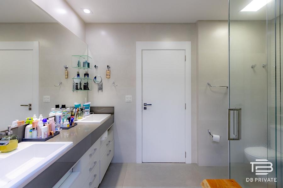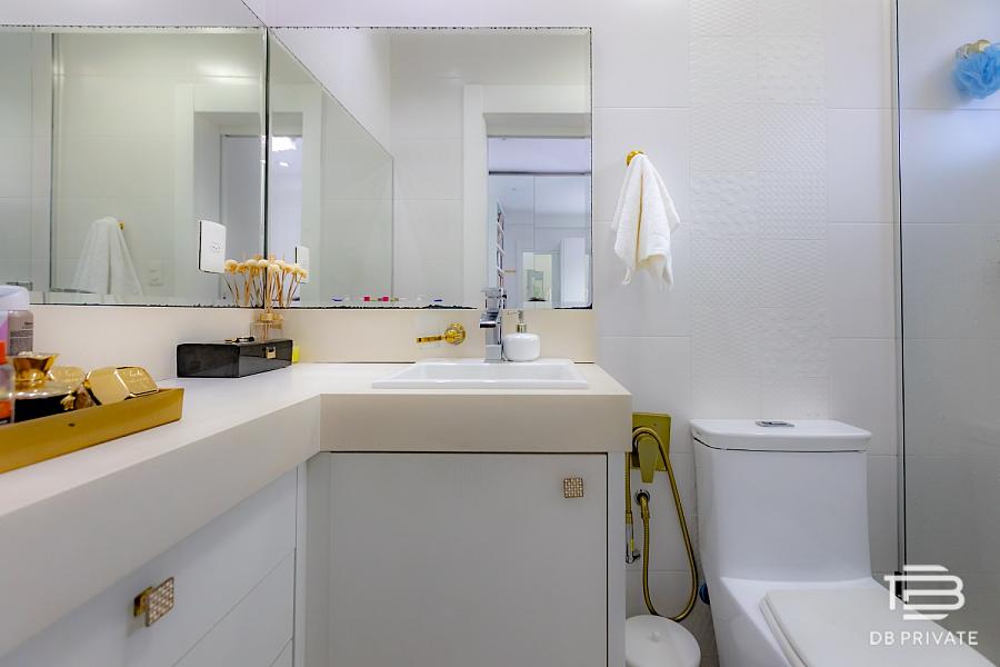 • Materiais nobres: porcelanato nas áreas sociais, piso vinílico nas suítes, janelas amplas, automação de cortinas e venezianas motorizadas, rebaixamento em gesso com cortineiros e isolamento acústico entre pavimentos.