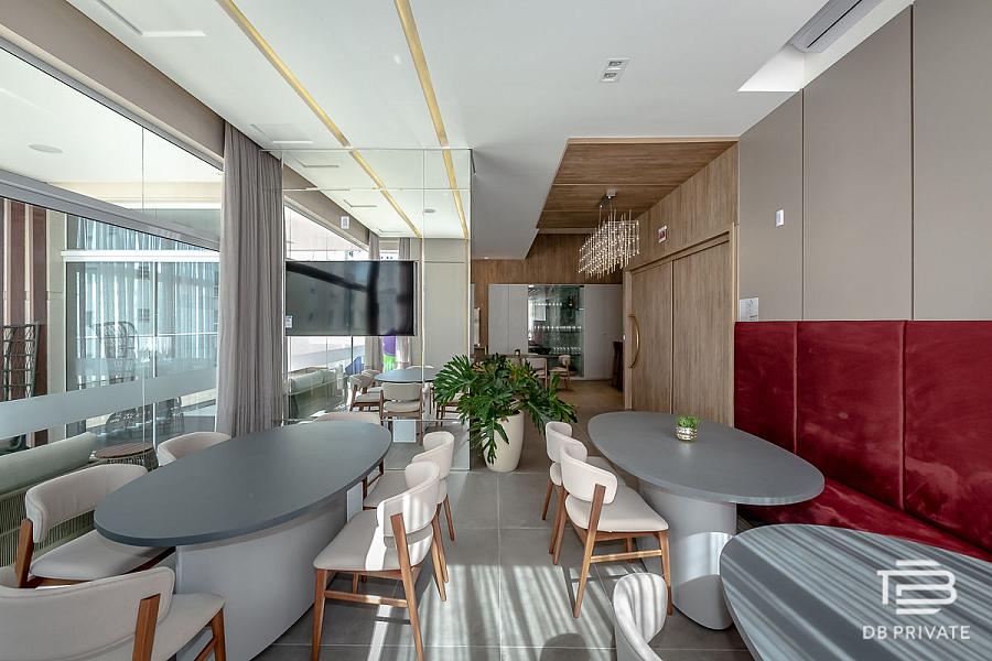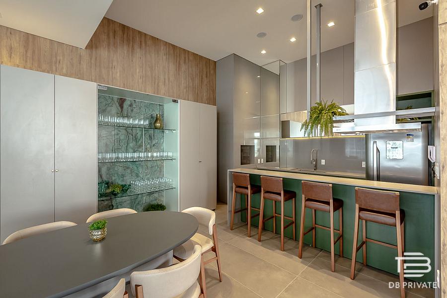 • Área privativa de 172,99 m² com living integrado, cozinha gourmet com churrasqueira a carvão e acabamentos de alto padrão.