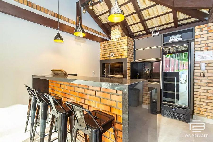 • Sacada com churrasqueira a carvão, ideal para momentos de lazer em família