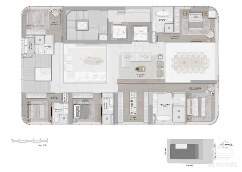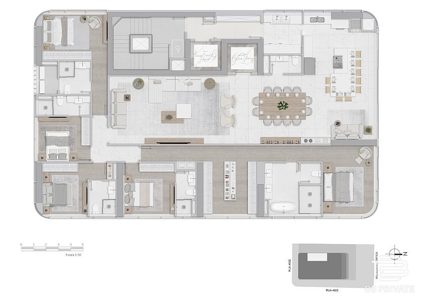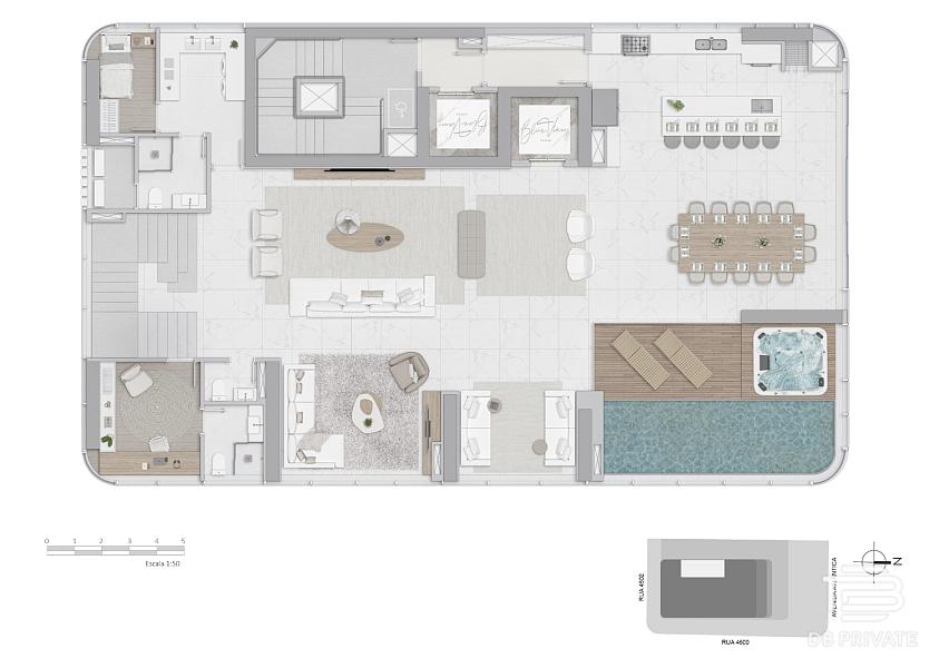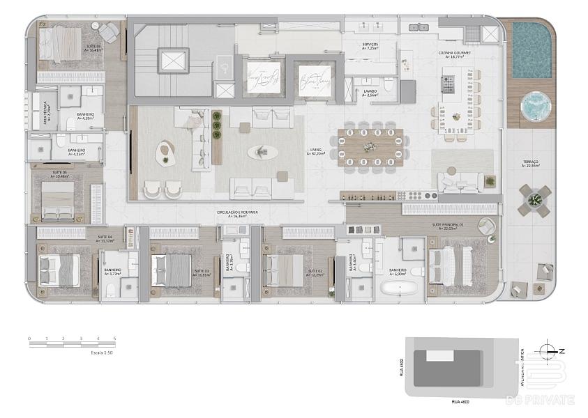 São cerca de 50 pavimentos, oferecendo uma combinação de unidades residenciais com espaços comuns planejados para lazer e conforto à beira-mar.