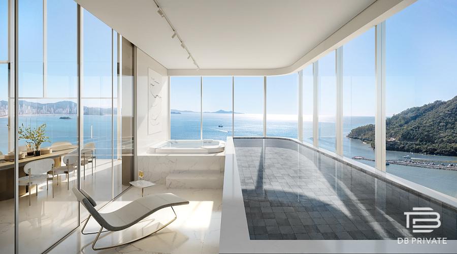 Concebido para moradores que desejam viver “entre o céu e o mar”, o Blue View Tower é descrito como uma “torre sofisticada e elegante”, pensada para proporcionar uma experiência única à beira-mar.