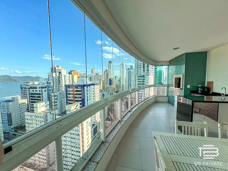 Apartamento 3 dormitórios com vista definitiva para o mar em Balneário Camboriú. Andar alto, suíte, sacada com churrasqueira e alto padrão de acabamento.