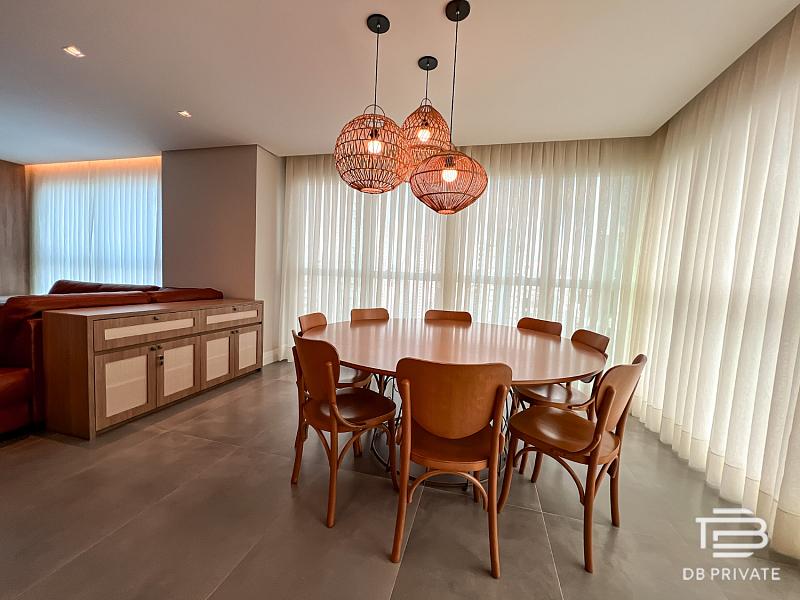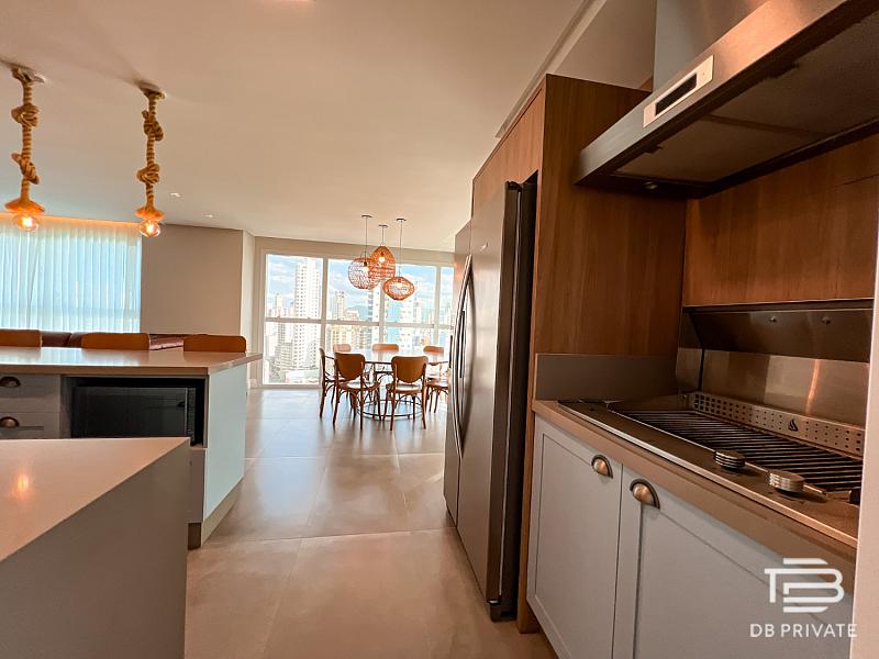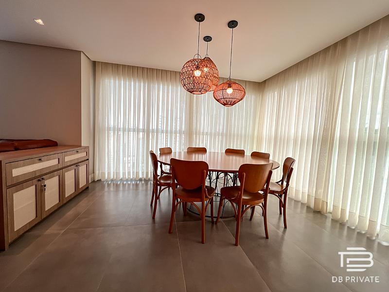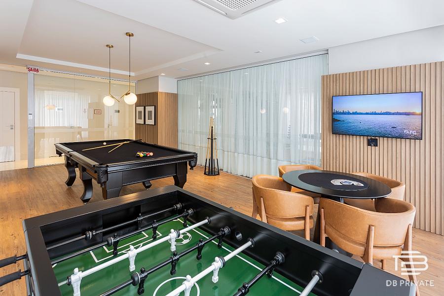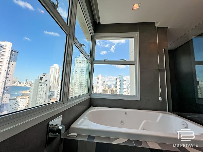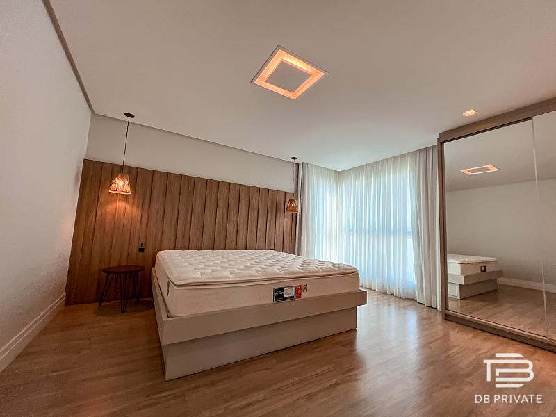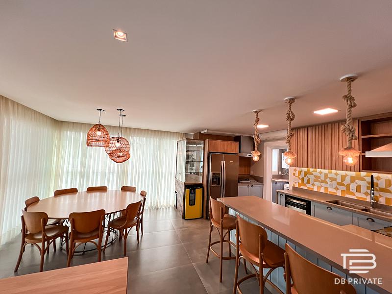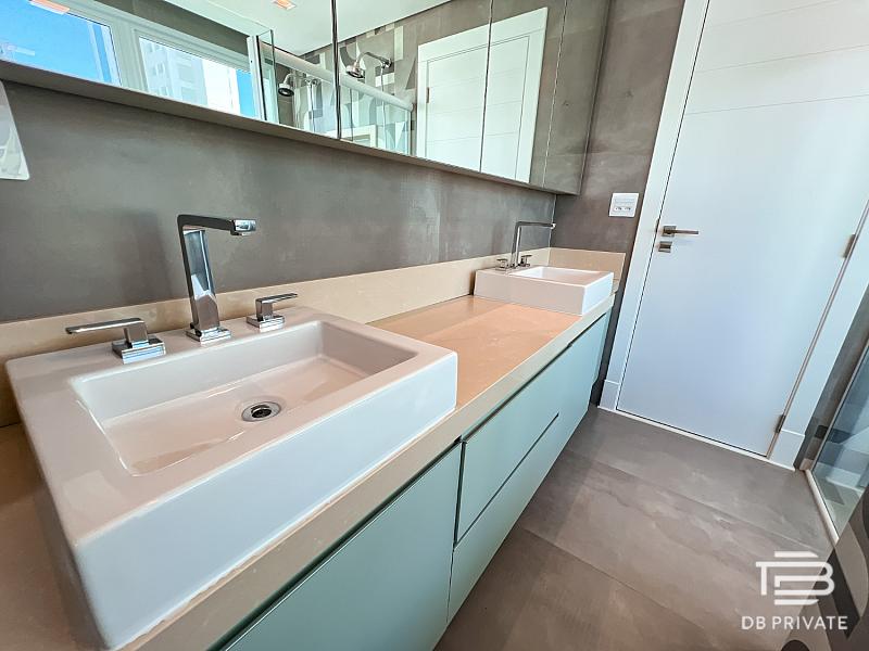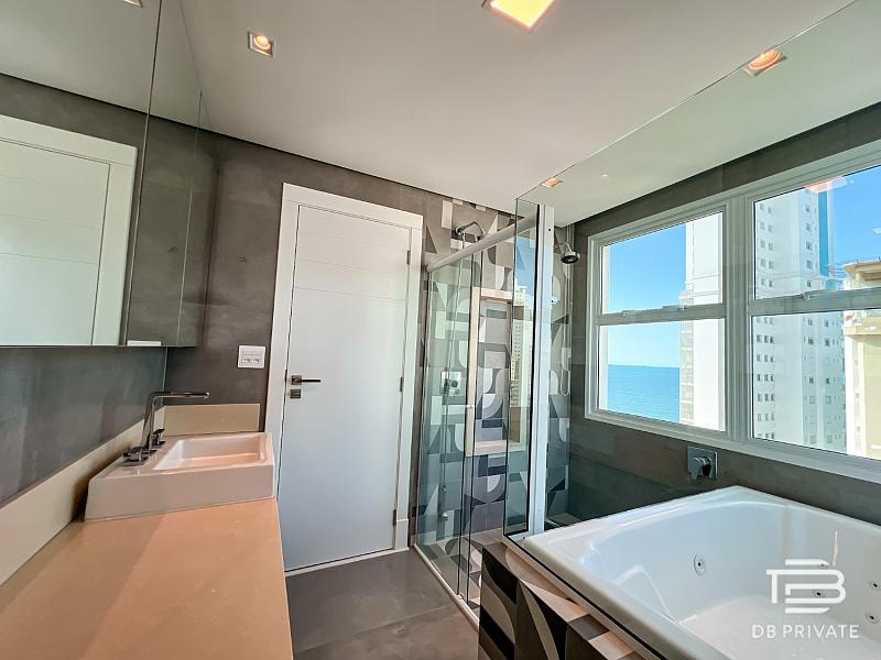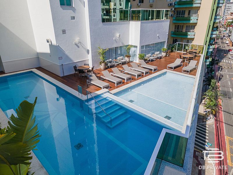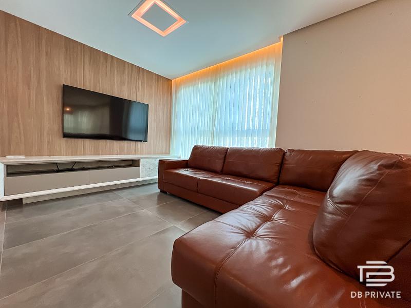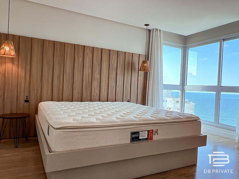 São apartamentos exclusivos, 1 por andar, com 140m² privativos, 3 suítes + home office, 3 vagas de garagem e vista para o mar. A unidade está finamente mobiliada, pronta para morar, com acabamentos de alto padrão, design sofisticado e infraestrutura completa de lazer.