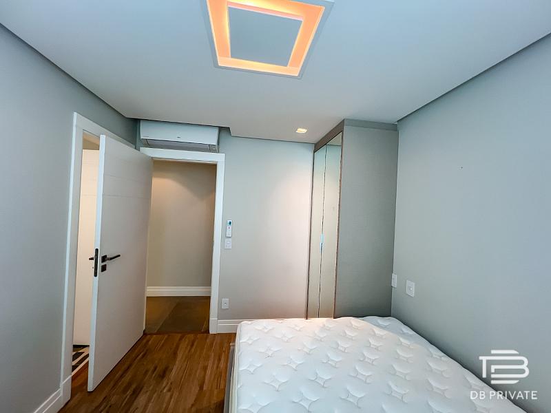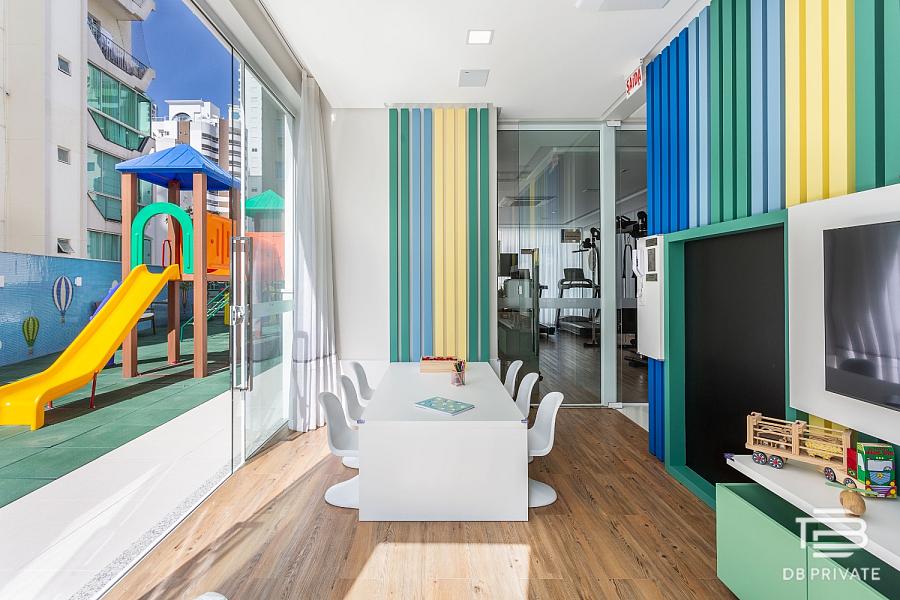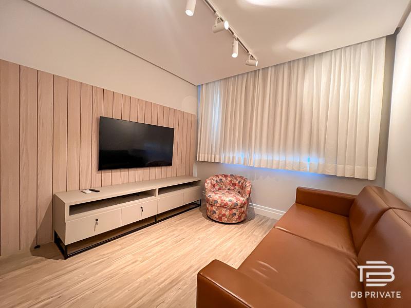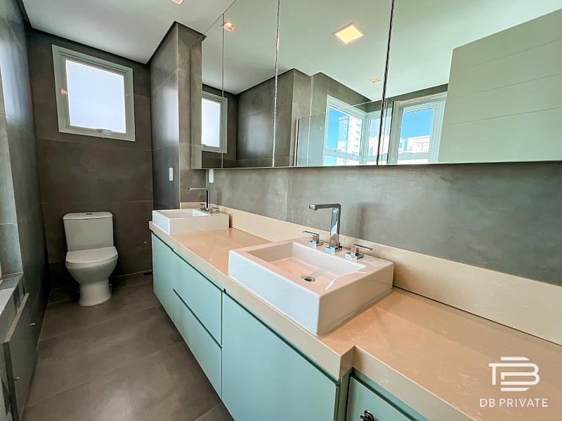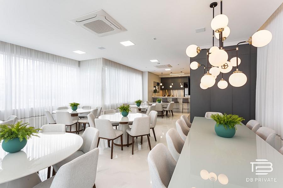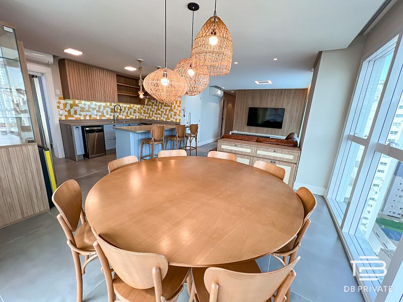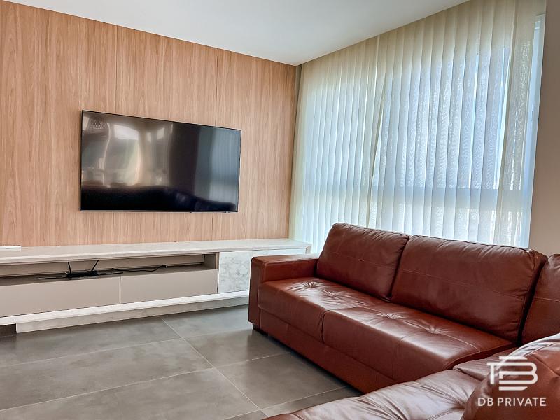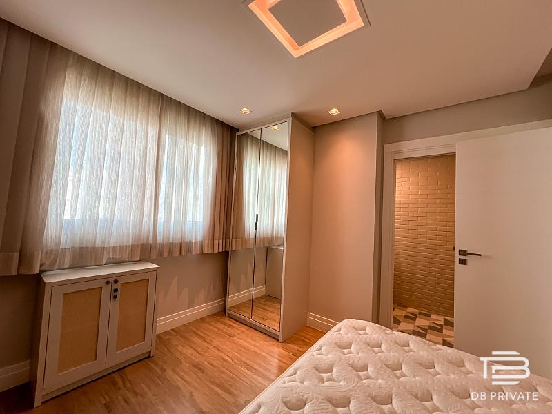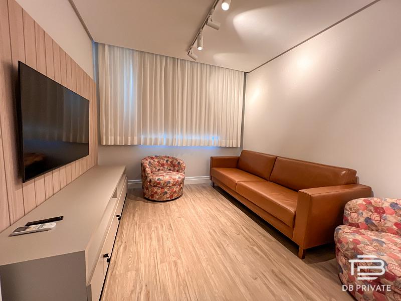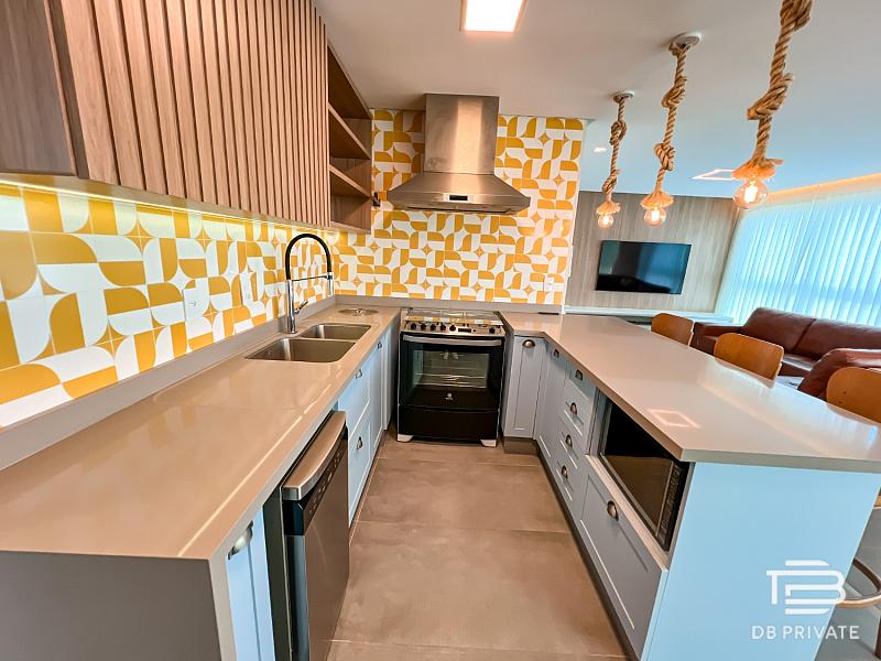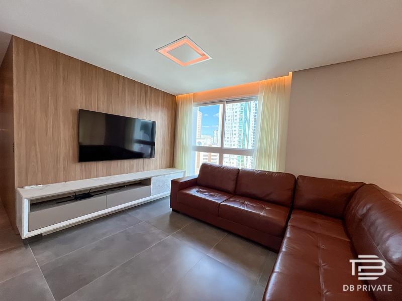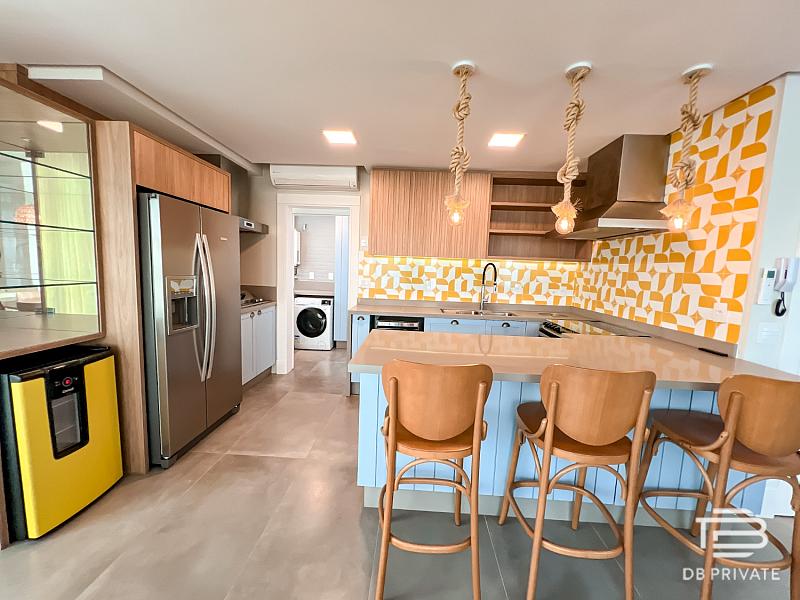 São apartamentos exclusivos, 1 por andar, com 140m² privativos, 3 suítes + home office, 3 vagas de garagem e vista para o mar. A unidade está finamente mobiliada, pronta para morar, com acabamentos de alto padrão, design sofisticado e infraestrutura completa de lazer.