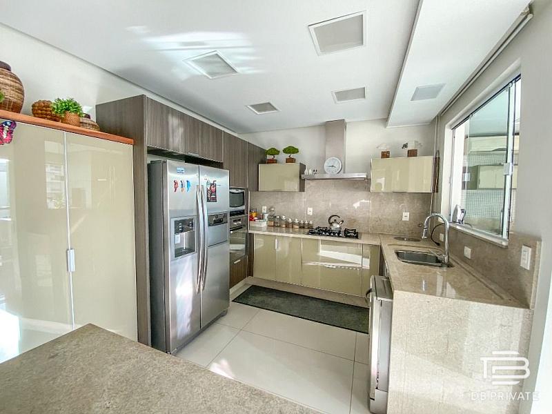 Além das suítes, o imóvel inclui três vagas de garagem, garantindo praticidade e segurança para sua família. A cozinha é moderna e totalmente equipada, integrada à sala de estar e jantar, criando um espaço perfeito para receber amigos e familiares. A área de serviço é bem ventilada e funcional, complementando a estrutura do apartamento.