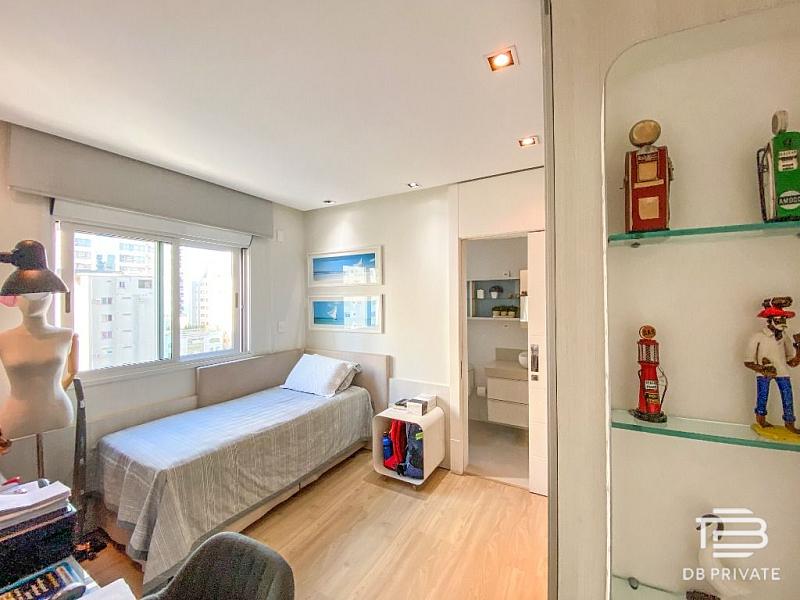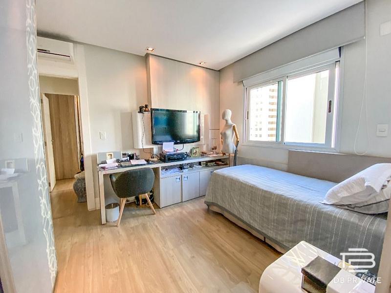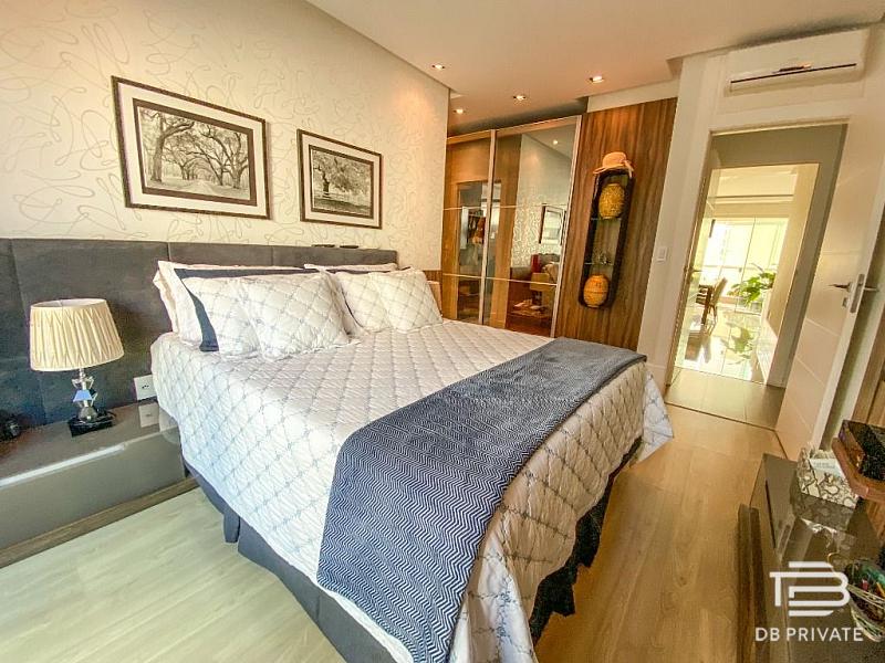 O apartamento dispõe de três amplas suítes, todas cuidadosamente decoradas e equipadas com móveis planejados de alta qualidade, proporcionando um ambiente elegante e funcional. A suíte master conta com um espaçoso closet e uma varanda privativa, onde é possível desfrutar de momentos relaxantes e apreciar a vista deslumbrante da cidade.