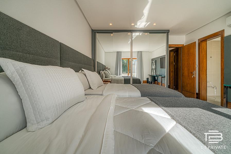 São paredes duplas que isolam o frio e o ruído. Esquadrias de alta performance, vidros com proteção solar e acústica. Materiais nobres, naturais, certificados. E uma sensação de bem-estar que começa no silêncio.