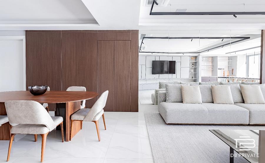 • porcelanato 1,2m x 1,2m na área social • piso de madeira na área íntima • infraestrutura para piso aquecido