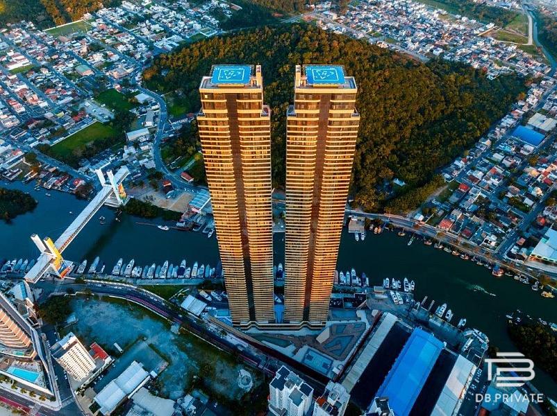 Um conceito singular por ser construído junto à Marina Tedesco, na Barra Sul, com vista magnífica para o mar, o verde da Mata Atlântica e o Rio Camboriú.