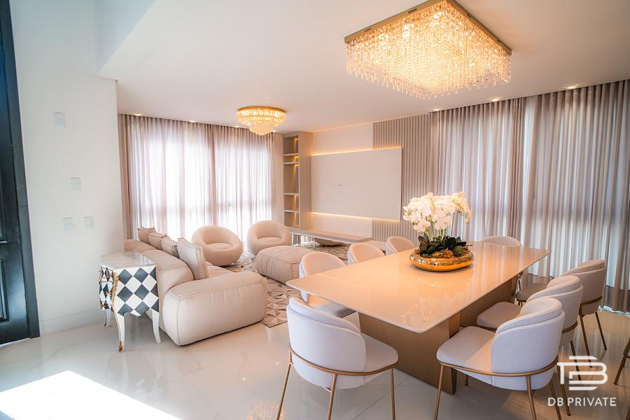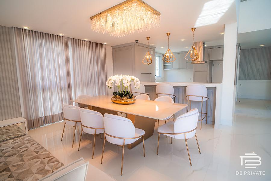 Com 397,99m² privativos, a casa possui 6 dormitórios, sendo 4 suítes, e foi pensada nos mínimos detalhes para oferecer uma experiência de viver que une estética, conforto e funcionalidade. A sala principal, a suíte master, a cozinha e os banheiros já são entregues mobiliados com alto padrão.